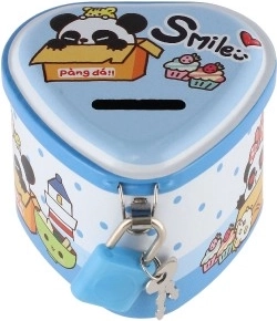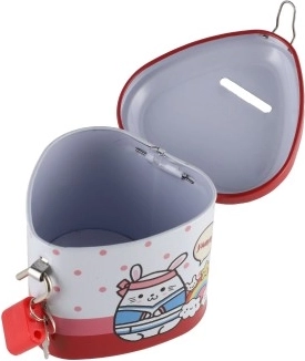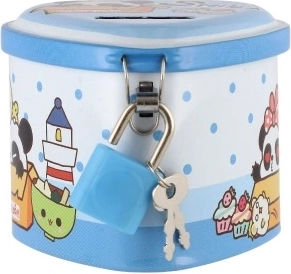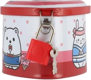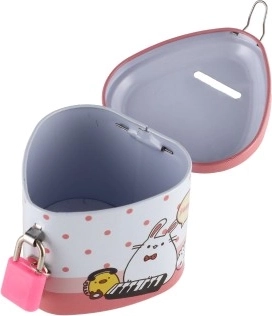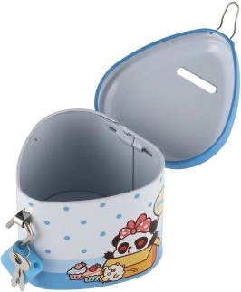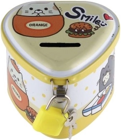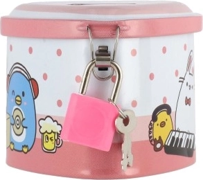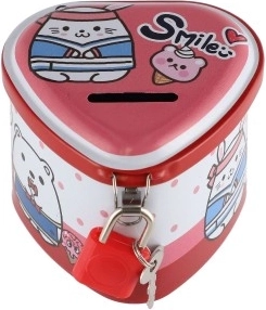 Această pușculiță metalică pentru copii, în formă de inimă, îmbină un design fermecător cu funcții practice. Datorită corpului metalic solid și lacătului cu cheițe, oferă un loc sigur pentru economii, în timp ce ilustrațiile colorate îi motivează pe copii să economisească regulat.