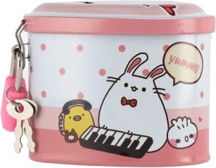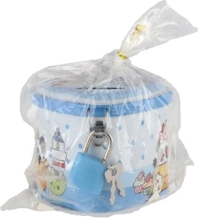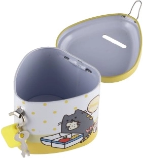 Pușculița este mică și ușoară, astfel încât încape pe raft, pe birou sau în rucsăcel. Fanta din capac permite introducerea comodă a monedelor, iar cheițele sunt mereu la îndemână. Un cadou grozav pentru copiii care învață să gestioneze banii.