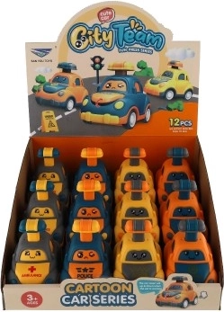 Bucurați-vă de multă distracție cu mașinuțele Apasă și pornește. Copiii apasă pur și simplu butonul/maneta de pe acoperiș, iar mașinuța pornește înainte datorită inerției. Culorile vesele, fețele drăgălașe și mersul lin al roților invită la joacă atât acasă, cât și în călătorii.