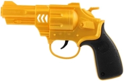 Această pistolă din plastic cu volantă este o alegere ideală pentru micii aventurieri. Nu are nevoie de gloanțe sau baterii – distracția este oferită de volanta mecanică, care emite un sunet specific în timpul jocului. Datorită construcției solide și greutății reduse, pistolul este ușor de manevrat și sigur pentru copii.