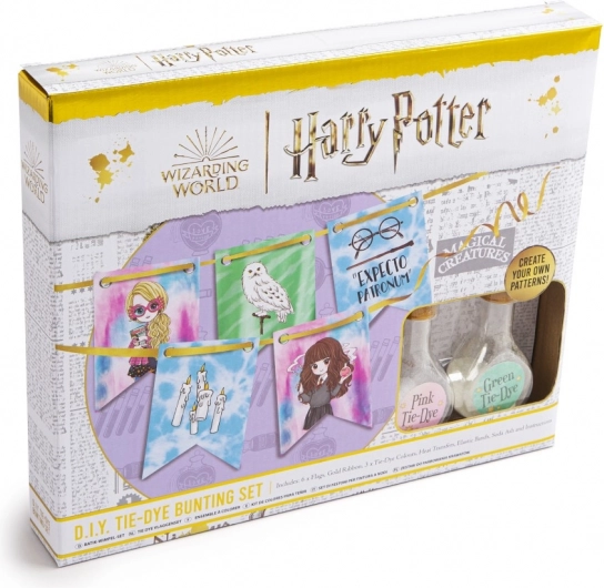 Transformați orice petrecere într-un eveniment magic. Setul de vopsire batik pentru stegulețe cu licență Harry Potter vă permite să creați cu ușurință decorațiuni personalizate cu un efect tie-dye spectaculos. Datorită culorilor și accesoriilor incluse, procesul este simplu, distractiv și potrivit chiar și pentru începători.