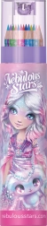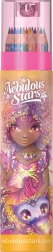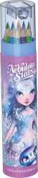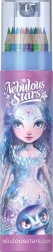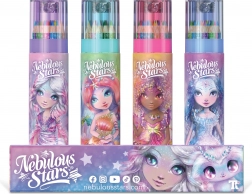 Set stilat de 18 creioane colorate într-un tub practic NEBULOUS STARS, completat cu 1 creion și ascuțitoare integrată. Variante de culoare ale tubului: mov, verde, roz, albastru.