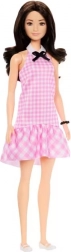 Păpușa Barbie Fashionistas aduce o interpretare modernă a stilului retro, inspirată de lookul Quick Curl din 1973. Rochia elegantă roz cu model gingham este completată de o fundă neagră la decolteu, încălțăminte albă și o brățară neagră – împreună formează o ținută chic pentru joaca de zi cu zi sau pentru momente speciale.