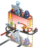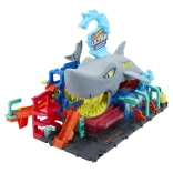 Descoperiți aventuri palpitante cu spălătoria auto Hot Wheels City, unde rechinul dominant îi atrage pe copii în acțiune. Intrați cu vehiculul inclus Color Reveal pe rampă, direct în gura deschisă a rechinului! Prin apăsarea capului rechinului, schimbați culoarea apei și urmăriți cum dezvăluie noi decoruri pe vehiculul vostru.