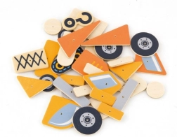 Formele colorate din lemn cu margini rotunjite dezvoltă creativitatea și motricitatea fină a copiilor de la 3 ani.