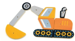 Cartonașele cu șabloane îi inspiră pe copii să asambleze un excavator, o macara sau un camion și îi învață să lucreze sistematic.
