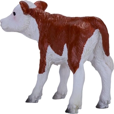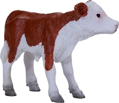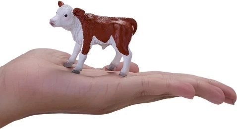 Proporții fidele, textură fină a blănii și coloritul maro-alb tipic vițelului Hereford fac din figurină o piesă atrăgătoare pentru joacă și colecție.