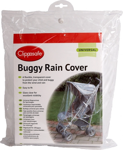 Protecție universală CLIPPASAFE pentru cărucior, ideală împotriva vremii nefavorabile. Oferă flexibilitate și vizibilitate, fiind un accesoriu esențial pentru mama și bebelușul său.
