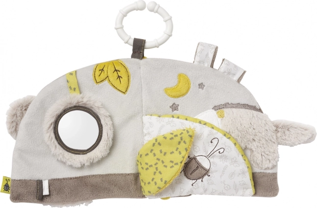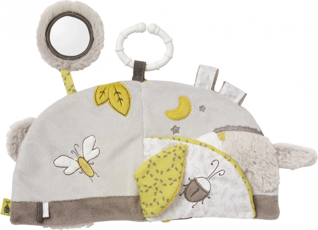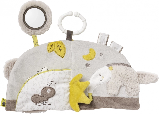 Această cărtulie creativă din pluș este ideală pentru stimularea și dezvoltarea simțurilor copilului. Datorită buclei practice, cartea poate fi folosită nu doar în cărucior, ci și în pătuț, în mașină sau oriunde este nevoie. Prin aspectul său atractiv, folosirea culorilor și a oglinzii, captează atenția curioșilor ochișori ai celor mici. Materialele variate utilizate și zornăitoarea mențin interesul urechiușelor copiilor.