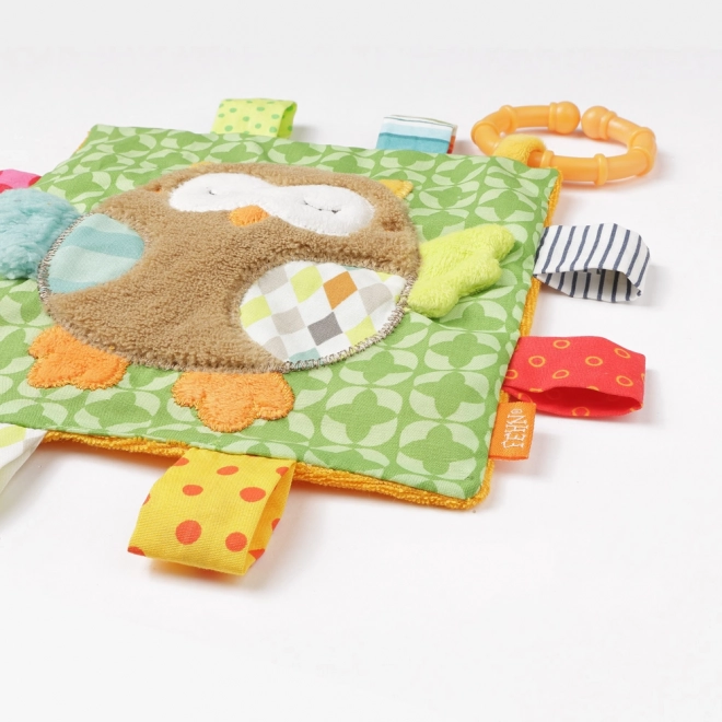 Această jucărie adorabilă este fabricată din materiale moi, plăcute la atingere. Datorită inelului de agățat, este ușor de atașat la scaunul de mașină sau cărucior, ceea ce face utilizarea sa convenabilă în timpul călătoriilor. Marginile colorate și diverse texturi oferă atât stimulare vizuală și tactilă pentru copil, cât și o experiență liniștitoare.