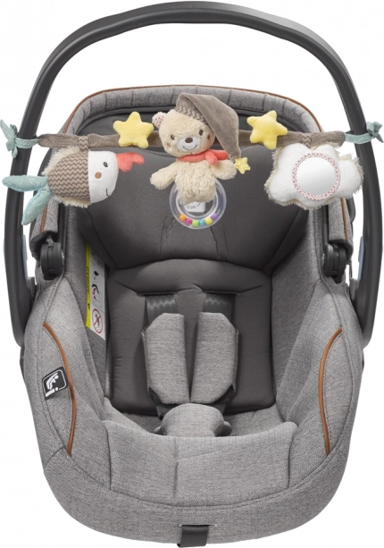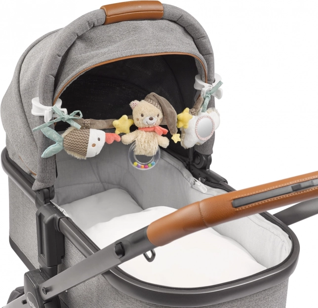 Acest lanț pentru cărucior cu motive de steluțe și norișori este ideal pentru distracție și dezvoltarea copilului în timpul plimbărilor. Cu cele două clipsuri ușor de utilizat, se prinde rapid de cărucior, pătuț sau scaun. Lungimea de 45 cm asigură accesul la diferitele elemente, motivând copilul să le exploreze și să îmbunătățească motorica.