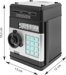Seiful se deschide după introducerea unui cod din patru cifre, pe care copilul îl poate seta singur. Îi învață responsabilitatea și protejează banii economisiți.