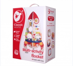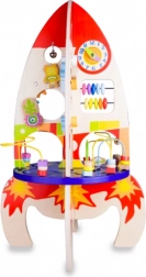 Această masă de joacă din lemn în formă de rachetă este un ajutor ideal pentru dezvoltarea abilităților de bază ale copiilor mici. Designul său interactiv oferă o mulțime de activități care stimulează curiozitatea și ajută la îmbunătățirea abilităților motorii și cognitive ale copiilor.