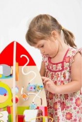 Masa de joacă este destinată copiilor de la 18 luni și datorită designului său atent conceput contribuie la dezvoltarea lor într-o manieră distractivă.