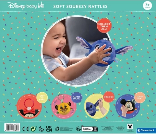 Adorabila minge de pluș cu motivul MINNIE va încânta orice bebeluș. Datorită suprafeței foarte moi, urechilor foșnitoare, zornăitorii interne și texturilor variate, sprijină dezvoltarea senzorială. Forma sferică invită la rostogolire, aruncare și târâre, în timp ce inelul detașabil permite fixarea ușoară pe cărucior sau pătuț. Potrivită de la 3 luni.
