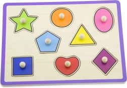 Jucărie distractivă și interactivă, care conține 8 piese viu colorate în diferite forme, fiecare cu un mâner, ceea ce facilitează manipularea cu mâinile mici. Jucăria este fabricată din lemn de calitate, asigurându-i longevitatea. Materialele și culorile folosite sunt ecologice și complet sigure pentru copii.