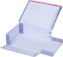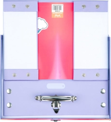 Această geantă școlară este realizată din hârtie laminată rezistentă și oferă un mecanism pliabil inovator. Datorită capselor, geanta poate fi ușor pliată și extinsă după nevoie, ceea ce facilitează depozitarea și transportul. Întărirea metalică și mânerul adaugă nu doar stil, ci și durabilitate, făcând-o ideală pentru utilizarea zilnică.