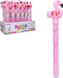 Bucurați-vă de distracție cu originalul apă de săpun 2în1 în formă de flamingo, care nu numai că face bule uimitoare, dar emite și sunete datorită fluierului.