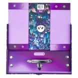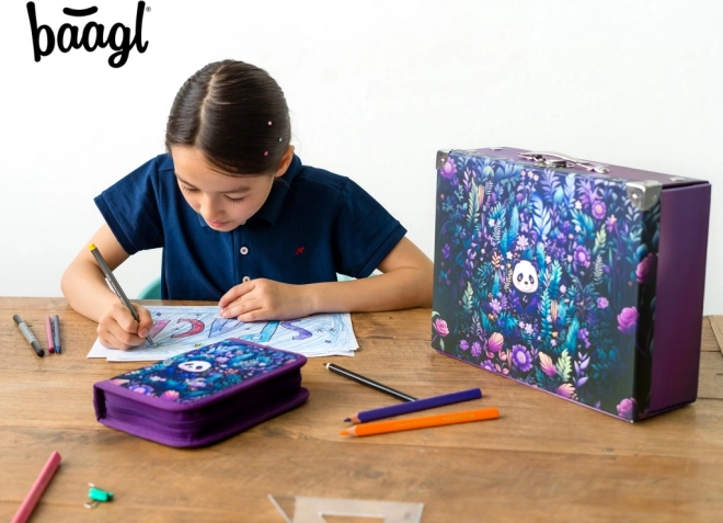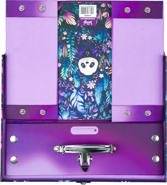 Mânerul metalic și închiderea clasică asigură o sigilare simplă și sigură. Cu dimensiunile sale, este ideală pentru depozitarea necesităților școlare, jucăriilor sau a obiectelor personale. Designul Jungle Panda adaugă un element estetic care va fascina atât copii cât și adulți.