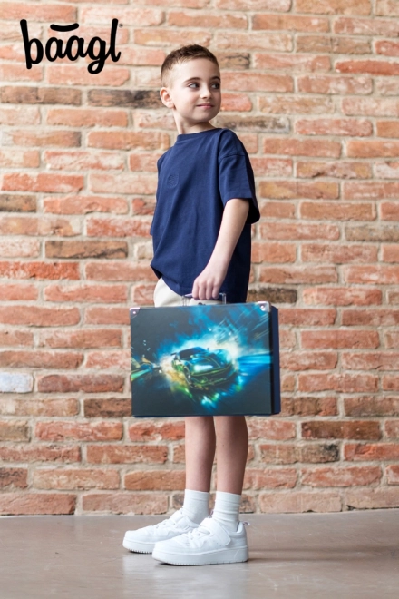Geantă pliabilă pentru școală pentru micii piloți de curse, care combină funcționalitatea și designul. Ideală pentru transportul sau depozitarea lucrurilor de școală cu accent pe viteză și adrenalină.