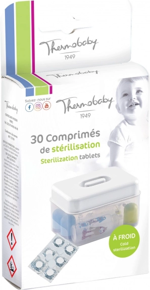 Tabletele de sterilizare sunt destinate dezinfectării la rece a produselor pentru copii – suzete, biberoane, farfurii și tacâmuri pentru copii, jucării de dentiție etc., precum și pentru sterilizarea accesoriilor pentru alăptare.