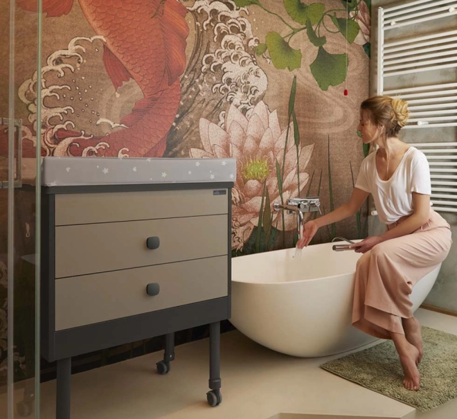 • Comodă de înfășat cu dimensiuni compacte și spații de depozitare suficiente