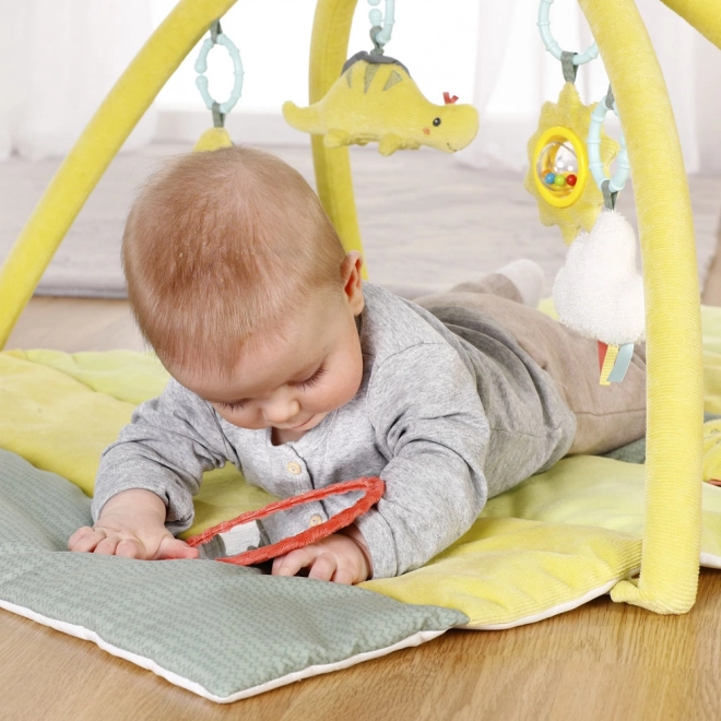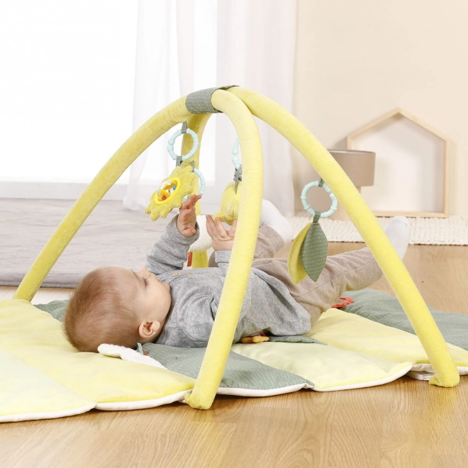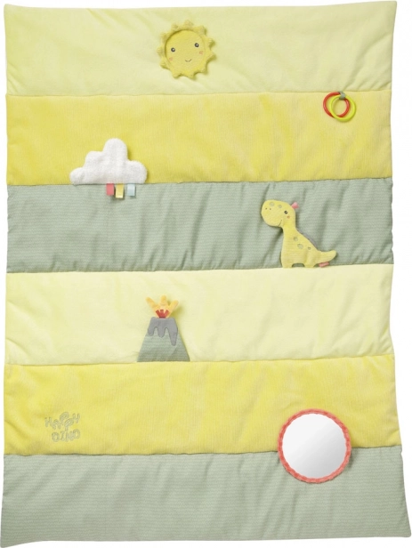 Pătura moale de activități susține curiozitatea naturală a copiilor încă de la vârste fragede. Lăsați copiii să descopere lumea din jurul lor în siguranță. Pătura este confecționată din material de calitate, moale, și izolează de frigul de la podea. Pătura include zornăitoare, fluieraș, hârtie foșnitoare, oglindă, clopoțel și modul cu vibrații. Toate aceste elemente stimulează jucăuș simțurile copilului și dezvoltă imaginația, simțurile și motricitatea fină. Arcul de joacă suspendat este la o înălțime potrivită pentru ca cei mici să ajungă la el chiar și atunci când stau întinși pe spate. Jucăriile de pluș suspendate sunt ușor de prins chiar și pentru mânuțele mici ale copiilor.