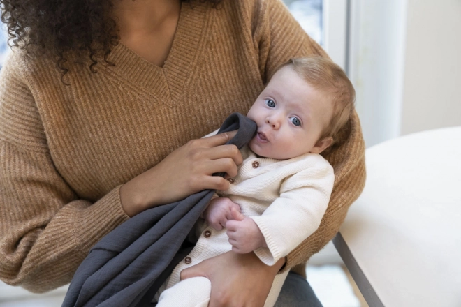 Pătura multifuncțională pentru alăptare Mom’n Play vă permite să alăptați bebelușul oriunde, în deplină intimitate. Este confecționată din bumbac organic, iar datorită inelului se poate fixa ușor în jurul gâtului. Inelul a fost conceput astfel încât să poată fi folosit și ca jucărie de dentiție. Pătura poate fi folosită pentru a șterge fața bebelușului sau pentru a rezolva situații neprevăzute în timpul călătoriilor.