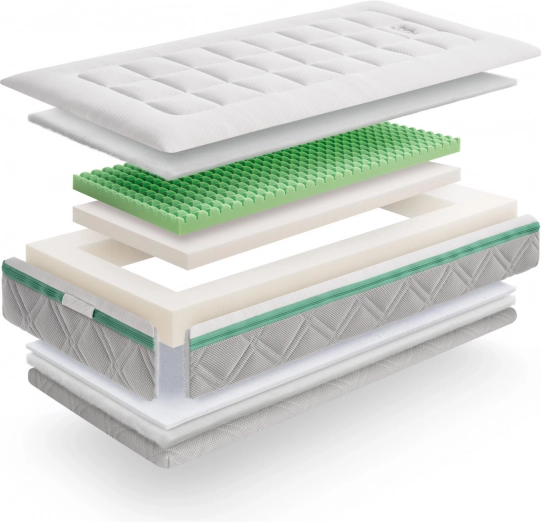 Spuma moale și perforată în combinație cu spuma cu memorie se adaptează corpului copilului pentru a obține cea mai bună respirabilitate posibilă.