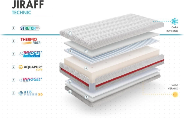 Profiled Innogel® + Visco Innogel® – Oferă mai multă senzație de prospețime decât spuma cu memorie obișnuită. Particulele de gel încetinesc absorbția căldurii și reduc senzația de încălzire, astfel încât salteaua cu acest strat asigură un somn liniștit și neîntrerupt.