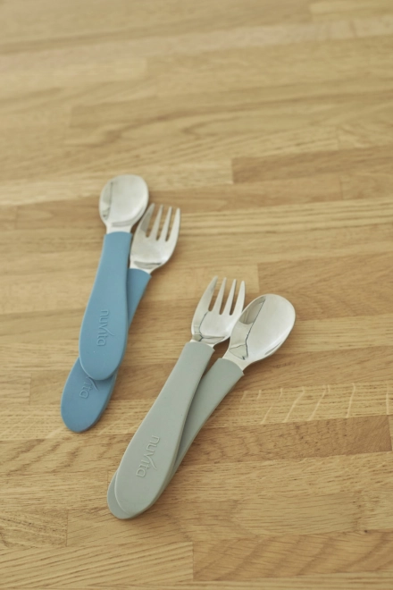 Atât lingurița, cât și furculița au un suport igienic „fără contact”, care împiedică atingerea directă a suprafețelor. Mânerul tacâmurilor este ergonomic, astfel încât să fie ușor de ținut chiar și de către copiii care abia învață să mănânce singuri. Datorită mânerului din silicon, lingurița nu va aluneca din mânuțele copiilor.