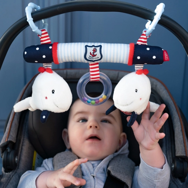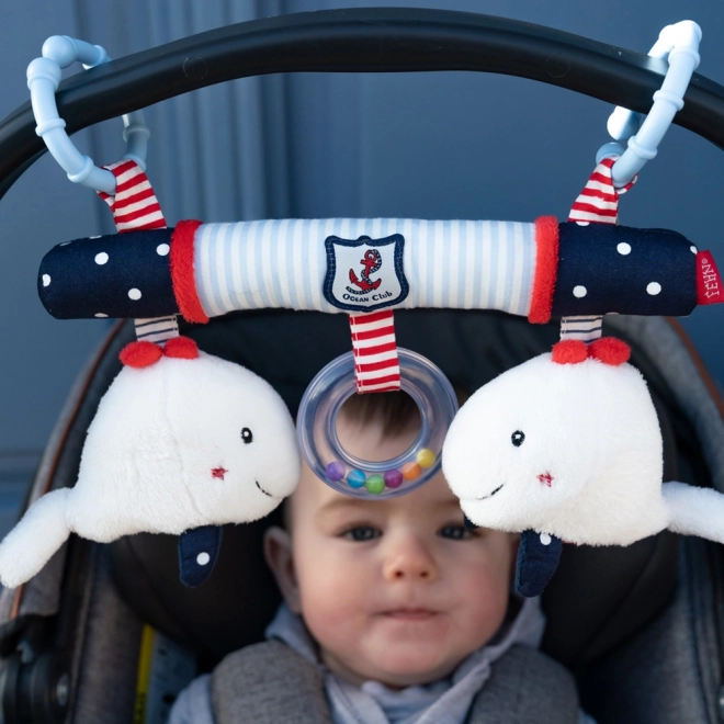 Bară de jucării Ocean Club oferă distracție și dezvoltarea simțurilor copilului tău, fie că ești acasă sau în călătorie. Se fixează ușor de scaunul auto, cărucior, pătuț sau țarcuri pentru aventuri nesfârșite.