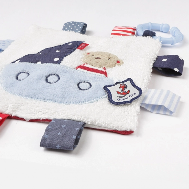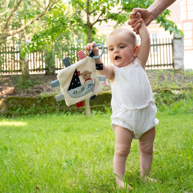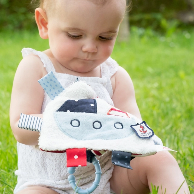 Jucăria de pluș poate fi ușor fixată pe cărucior, scaunul auto sau pătuț, ceea ce o face ideală atât acasă cât și la călătorii. Designul maritim cu ursulețul drăguț în bărcuță va aduce mereu o stare de bine copilului dumneavoastră.