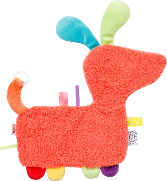 Cățelușul ondulat și colorat din colecția COLOR Friends stârnește curiozitatea copilului, încurajează prinderea și stimulează simțurile. Datorită amestecului de materiale și sunetului stimulant al hârtiei foșnitoare ascunse, nu va fi niciodată plictiseală. Bebelușii adoră forma câinelui și blănița lui pufoasă, pentru a-l apuca, atinge, descoperi și alinta! Drăgălașul cățeluș poate fi luat oriunde și îl însoțește pe copil la joacă și în somn. Inel de prindere practic.