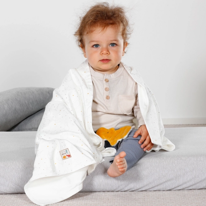 Descoperă pătură cu hipopotam zornăitor FehnNatur, realizată din jerseu 100% bumbac organic certificat. Ideală pentru multiple utilizări, moale și sigură pentru pielea delicată a copilului.