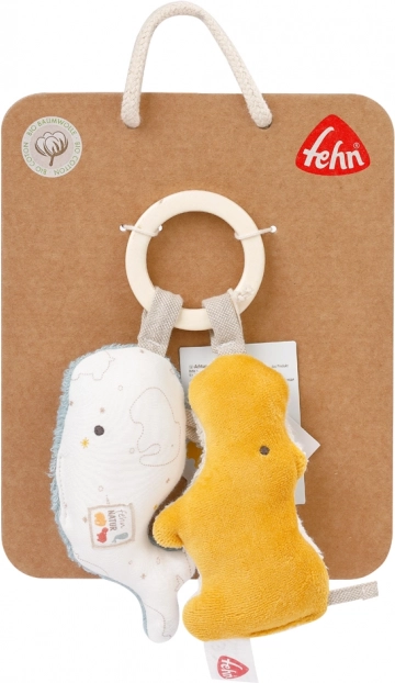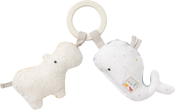 O jucărie adorabilă în forma a două animăluțe mici și vesele este o jucărie pe care micuțul vostru o va îndrăgi de la prima vedere. Datorită buclei practice, poate fi atașată la cărucior, pătuț, în mașină sau oriunde doriți. Acești prieteni pufoși, prin culorile lor, sunt potriviți atât pentru fetițe, cât și pentru băieți. Materialul din care este realizată jucăria este foarte plăcut la atingere pentru mâinile mici ale copilului. Animăluțele vor atrage cu ușurință nu doar privirile curioase ale copiilor, ci și urechiușele, deoarece conțin și o zornăitoare.