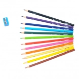 Creioanele triunghiulare MFP ESSENSO sunt ideale pentru școlari și micii artiști. Forma ergonomică triunghiulară susține prinderea corectă și un desen confortabil. Fiecare dintre cele 12 creioane miroase plăcut, transformând desenul într-o experiență și mai plăcută. Creioanele au mine ferme și rezistente, care se rup mai greu.
