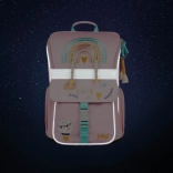 Setul școlar BAAGL Zippy Curcubeu roz este alegerea ideală pentru elevii din clasele primare. Ghiozdanul ergonomic cu corp întărit își menține forma stabilă, dispune de noua deschidere rabatabilă pentru acces rapid din bancă și de un organizator interior practic cu elastic pentru distribuirea uniformă a greutății. Greutatea redusă, elementele reflectorizante și materialele rezistente, impermeabile asigură confort și siguranță în fiecare zi de școală.