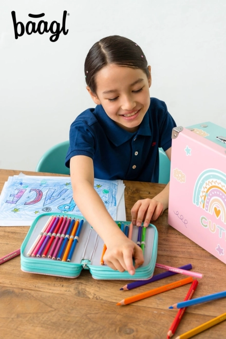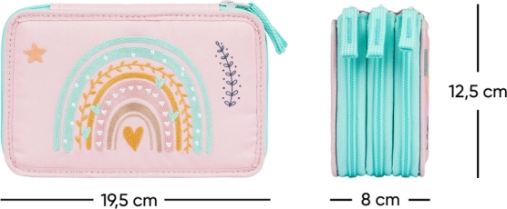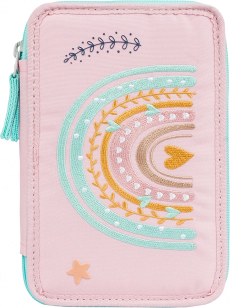 BAAGL Penar școlar cu trei compartimente Curcubeu roz