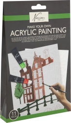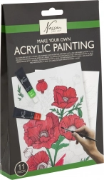 Conține 11 piese: culori acrilice variate, pensule, pânză predesenată și un ghid care vă conduce pas cu pas prin procesul de pictură.