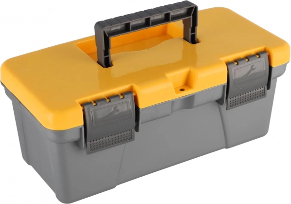 Geantă din plastic rezistent, cu mâner și cleme, păstrează toate piesele la un loc și este ușor de transportat.