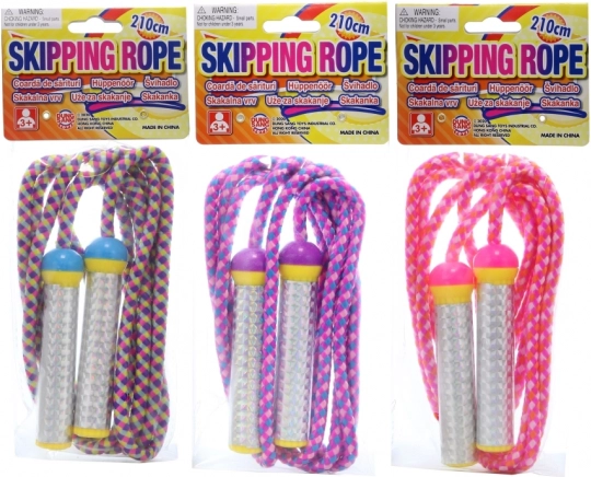 Coardă sărituri colorată și veselă pentru copii. Ideală pentru distracție și dezvoltarea abilităților motorii. Mânerele din plastic sunt ușoare și asigură o prindere facilă, chiar și pentru cei mai mici.