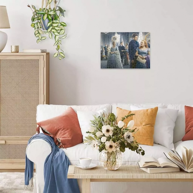 Motivul elegant din înalta societate a serialului Bridgerton prinde viață pe puzzle-ul RAVENSBURGER realizat la standarde înalte. Datorită producției precise, piesele se potrivesc perfect, nu se scămoșează și își păstrează forma. Lucrarea finală, cu dimensiuni de aproximativ 49,3 × 36,2 cm, este ideală pentru înrămare.