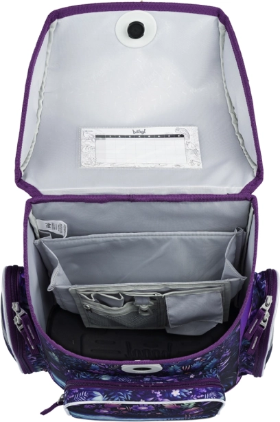 Ghiozdanul are închidere magnetică Fidlock pentru deschidere rapidă prin rotirea cataramei și închidere automată. În interior găsiți buzunar transparent cu orar și organizator practic pentru o distribuție uniformă a greutății. Nu lipsesc buzunarul frontal izolat, două buzunare laterale pentru sticlă și un fund rigid stabil care își păstrează forma.