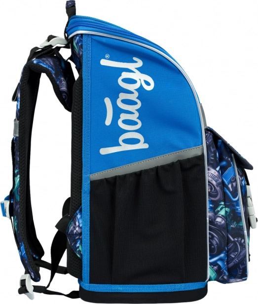 Sistemul de deschidere rabatabil pentru acces ușor direct din bancă, organizator interior cu elastic, buzunar frontal izolat și buzunare laterale rigide pentru sticlă. Material rezistent la apă, bază stabilă și elemente reflectorizante vizibile pentru siguranță pe drumul spre școală.