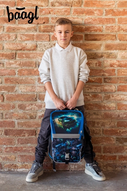 Un set practic și stilat, cu motiv de mașină de curse, ușurează fiecare zi de școală. Servieta ergonomică, cu sistem de spate glisant ERGO ADJUSTABLE SYSTEM, se adaptează exact înălțimii copilului, în timp ce bretelele de umăr, piept și compresie laterală, reglabile, asigură confortul și distribuirea corectă a încărcăturii.