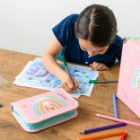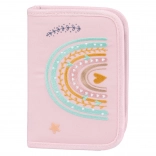 Penar practic și modern, în tonuri pastel de roz, cu motiv de curcubeu, bucură atât elevii, cât și studenții. Construcția cu un singur compartiment și două clapete permite organizare clară și acces rapid la toate obiectele necesare. Materialele rezistente și fermoarul YKK asigură o durată de viață îndelungată în utilizarea de zi cu zi.
