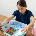 Două clapete interne și bucle elastice păstrează instrumentele de scris ordonate și în siguranță la locul lor.