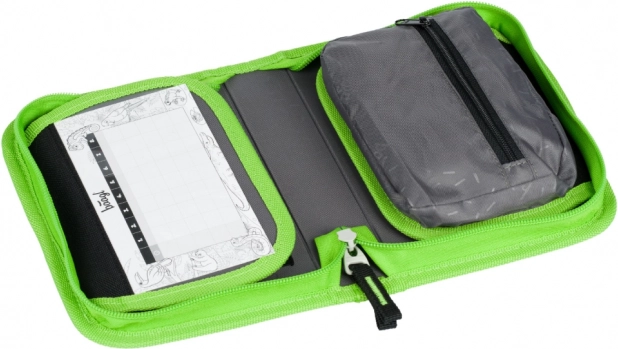 Două clapete, bucle elastice și un loc pentru orarul săptămânal păstrează toate instrumentele de scris și accesoriile clar și ordonat.