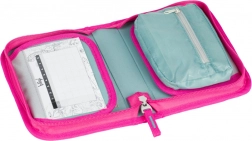 Două clapete, bucle elastice și un buzunar cu fermoar păstrează instrumentele de scris la locul lor. Totul este ordonat și imediat la îndemână după deschiderea penarului.